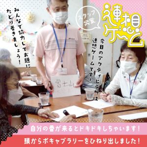 今日は、新しい方がお一人暮らしの保健室にご参加頂けました。常連のご利用様がお誘い下さったという事で、皆様ありがとうございました。多くの方に暮らしの保健室を知って頂き、健康維持、コミュニケーション作りの場として活用して頂けたら嬉しいです。