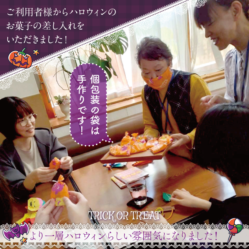 参加者の方から、かわいい手作りの小袋に入ったハロウィンのお菓子をプレゼントがあり🎁お菓子を手に、笑顔が広がる、和やかで華やかなひとときになりました✨☕